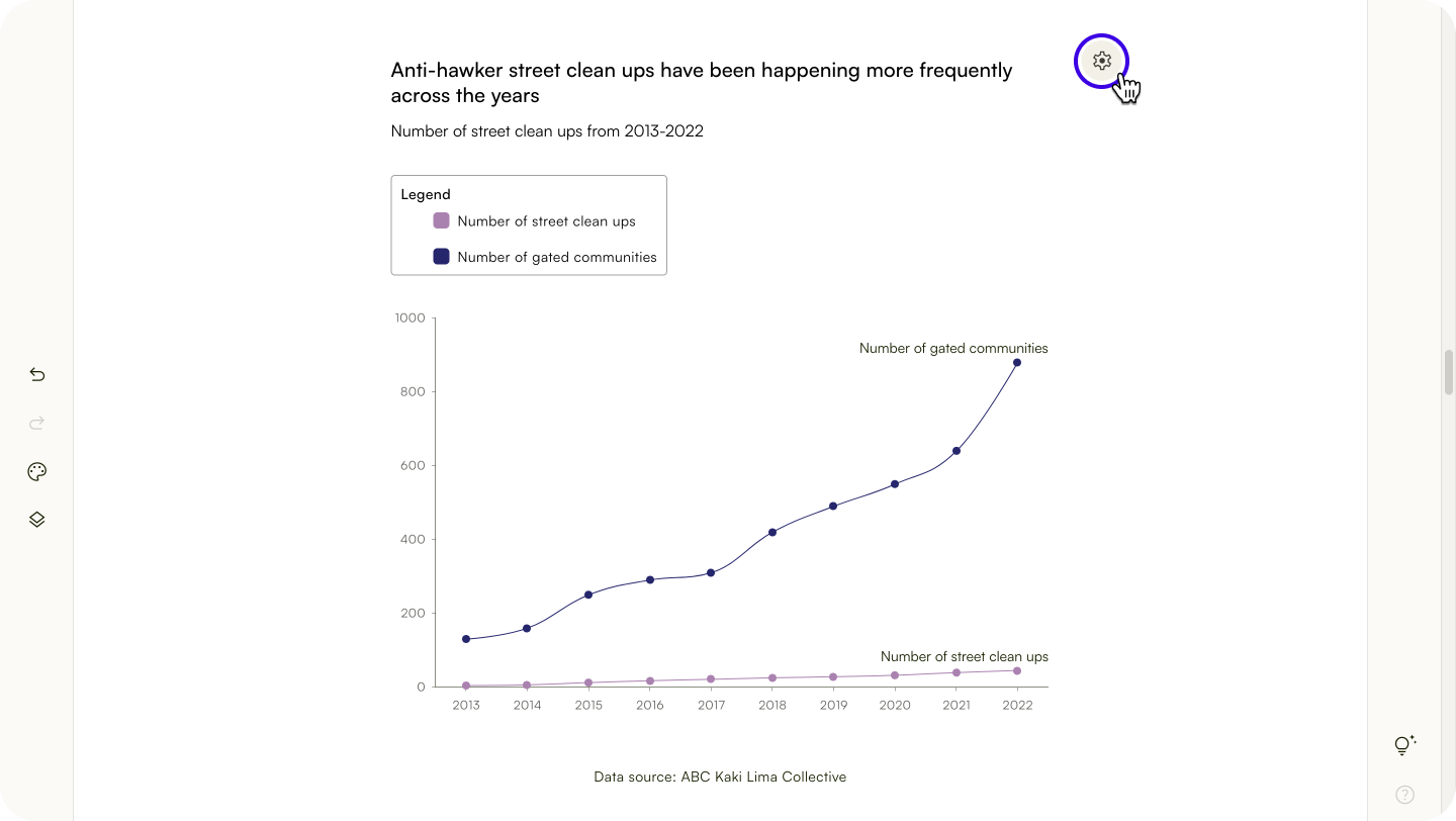 Click the settings icon on the top right of the data visualisation to continue to edit the visualisation.